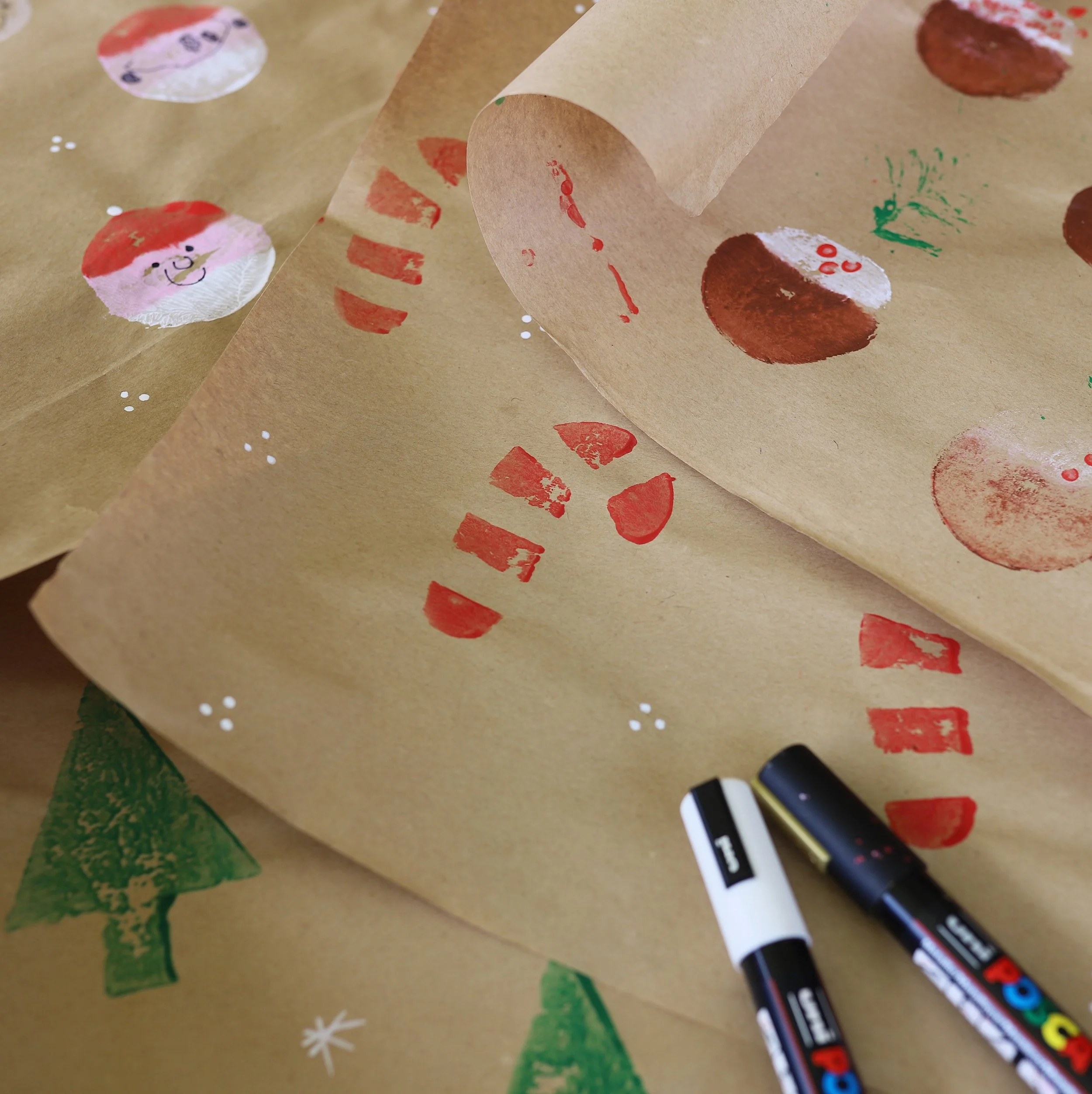 Potato stamps with a festive twist! Gather your cookie cutters & create the sweetest DIY Chrissy wrap!
