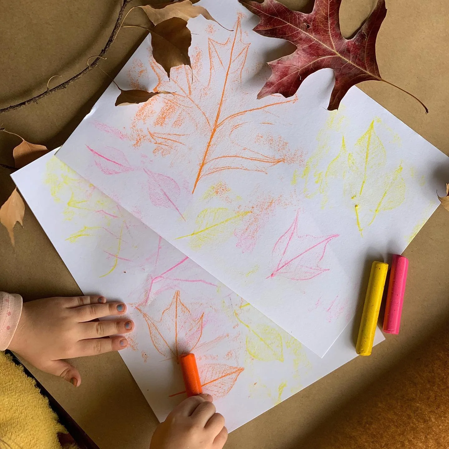 3. Rub the side of your crayon or pastel over the leaves, revealing their shape.
