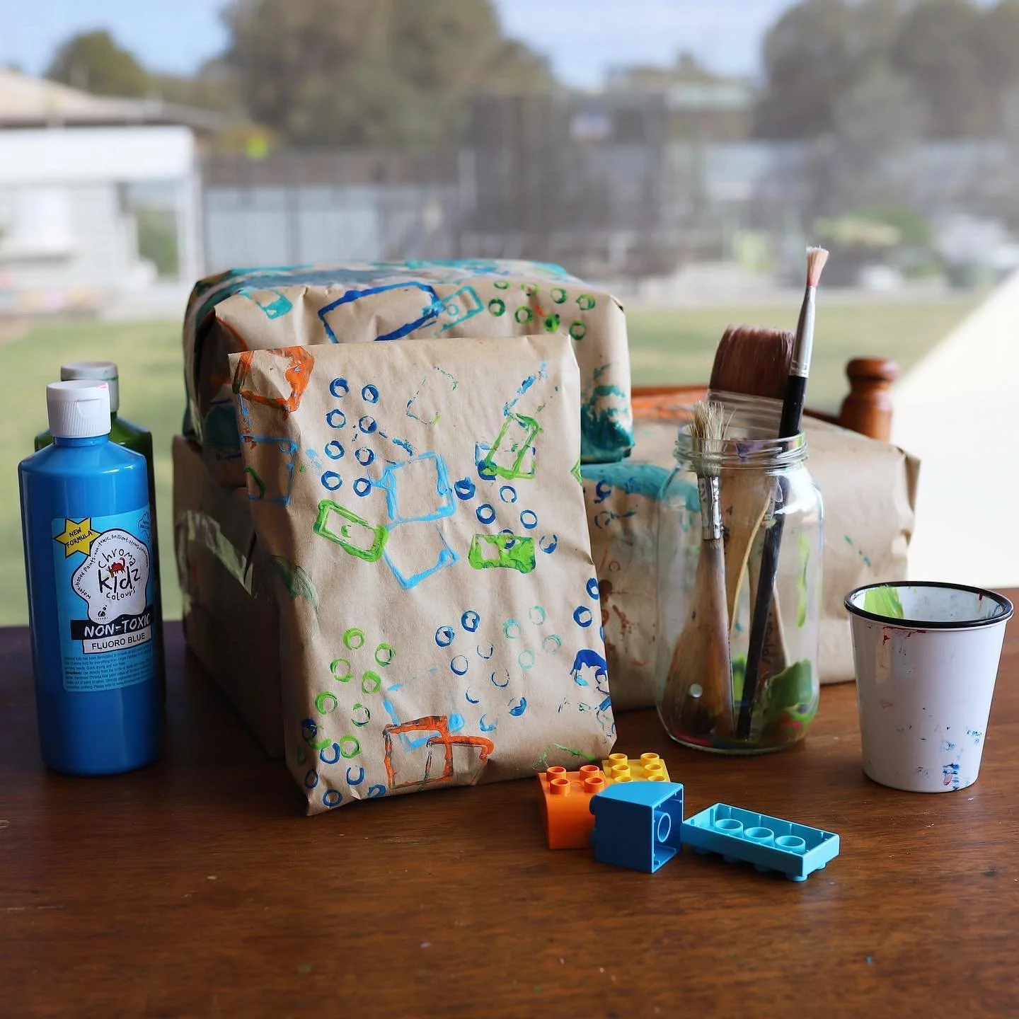With Father’s Day cards & gifts ticked off at Preschool it just leaves the gift wrap for us to whip up at home. Considering it’s a fave activity & to give it a ‘Dad’ feel we went with Lego printing!